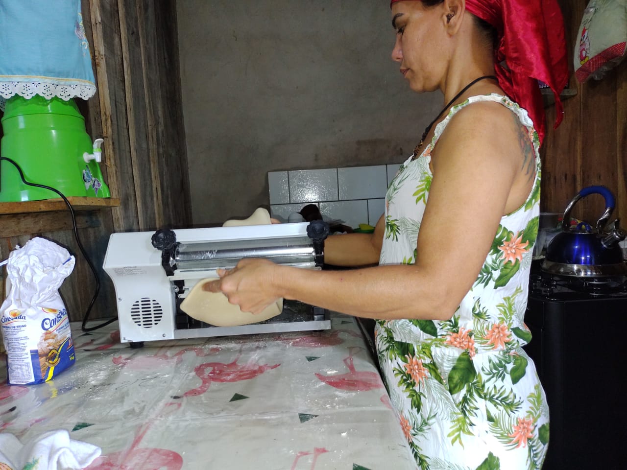 Vanessa teve a carga horária do trabalho reduzida e vende massas para complementar renda. Fonte: Kézia Rodrigues