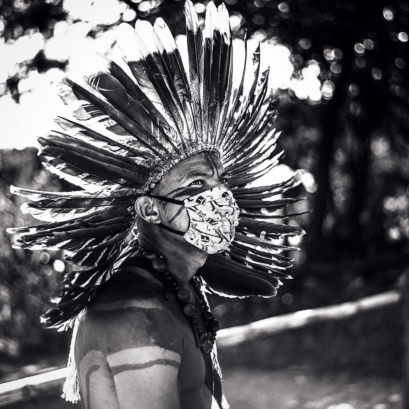Indígena utilizando a máscara, o principal item na prevenção contra a COVID-19. Fonte: Edgar Kanaikõ